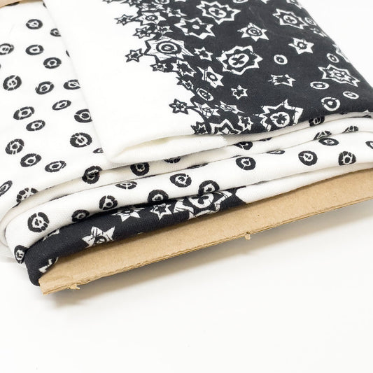1 Yd - Black Pattern on White Knit Jersey Fabric