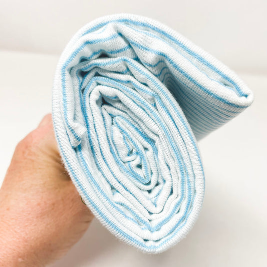 54" x 66" Baby Blue Pin Stripe Lightweight Jersey Stretch Fabric
