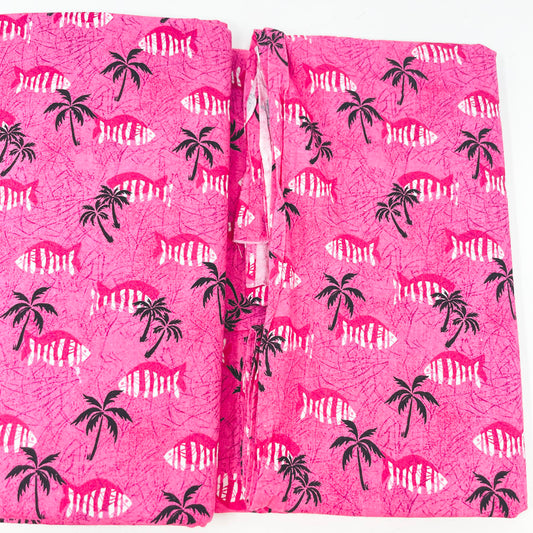 2.5 yd x 42" - Pink Fish & Palm Tree Fabric