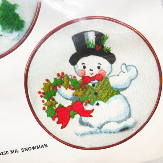 Vintage Bernat Holiday Hoops Mr/Mrs Snowman Stitchery Kit - 1978