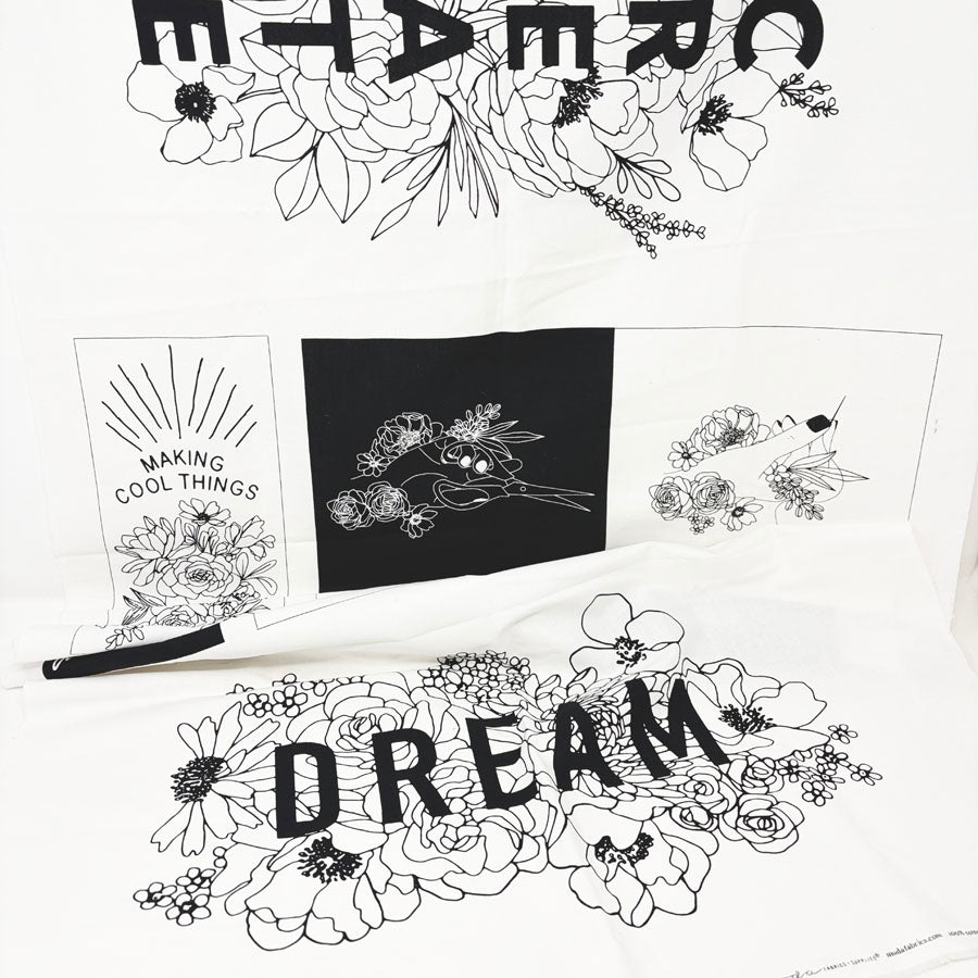 44" x 25" Create w/Black & White Flowers Fabric Panel for Moda